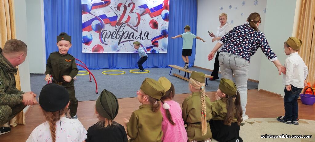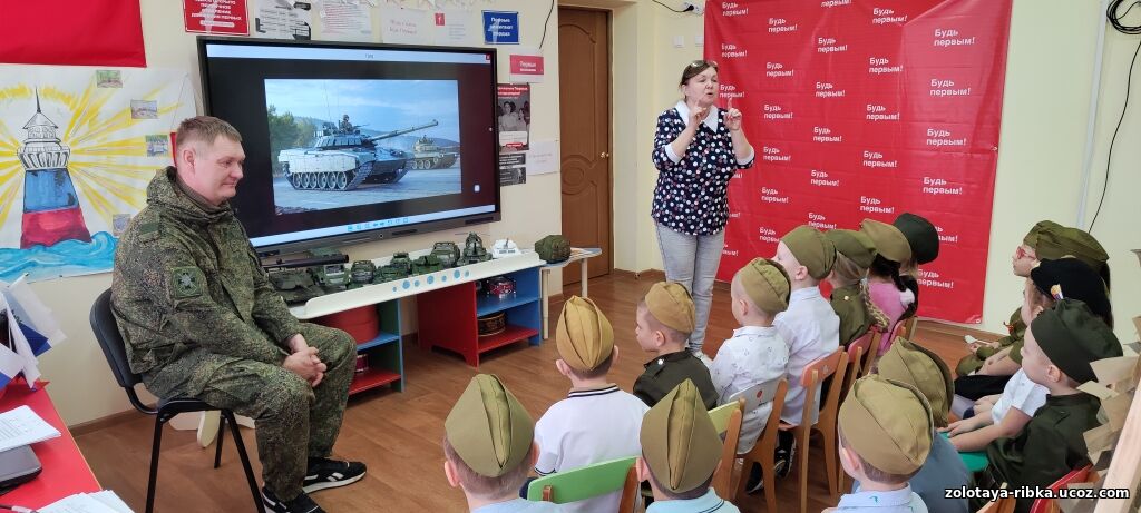 Познавательное мероприятие в честь Дня Защитника Отечества прошло в средней гр. Дельфинчики! На мероприятии присутствовал сержант Звягинцев Артем Юрьевич, который познакомил детей с военной техникой и рассказал про суровые будни русских солдат! Ребята подарили Артему Юрьевичу памятный плакат, а команда Движения Первых памятный оберег! Ребята пели песни, играли и прошли полосу препятствия как настоящие солдаты!